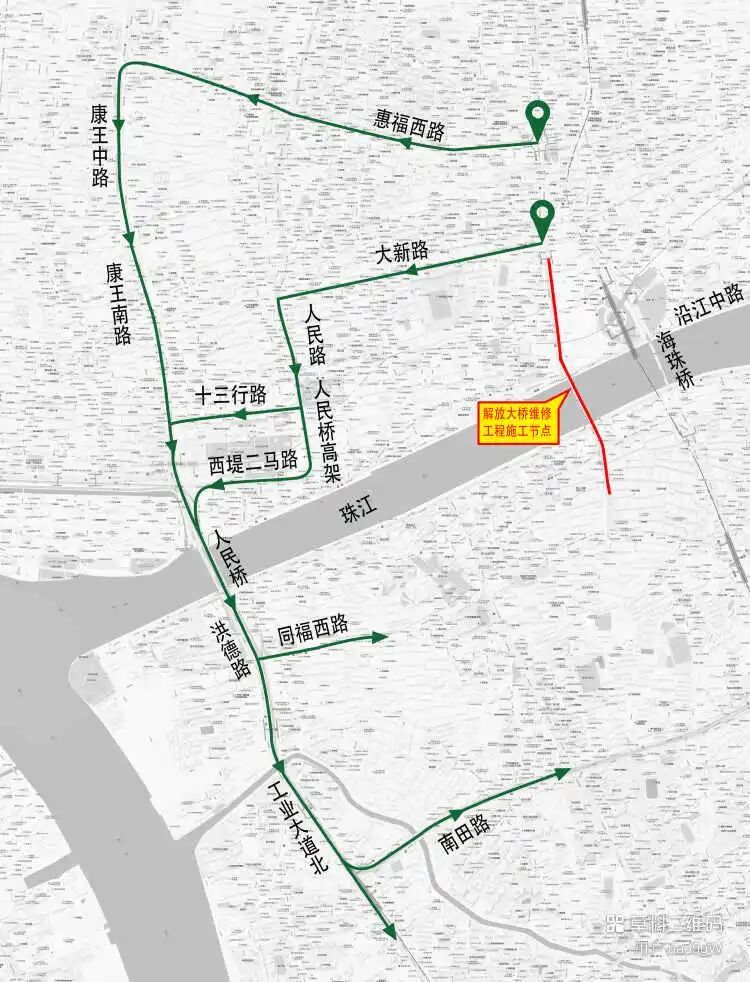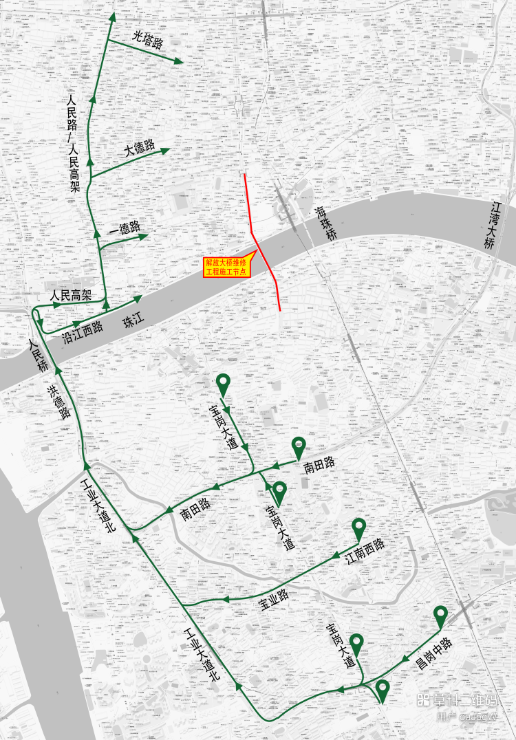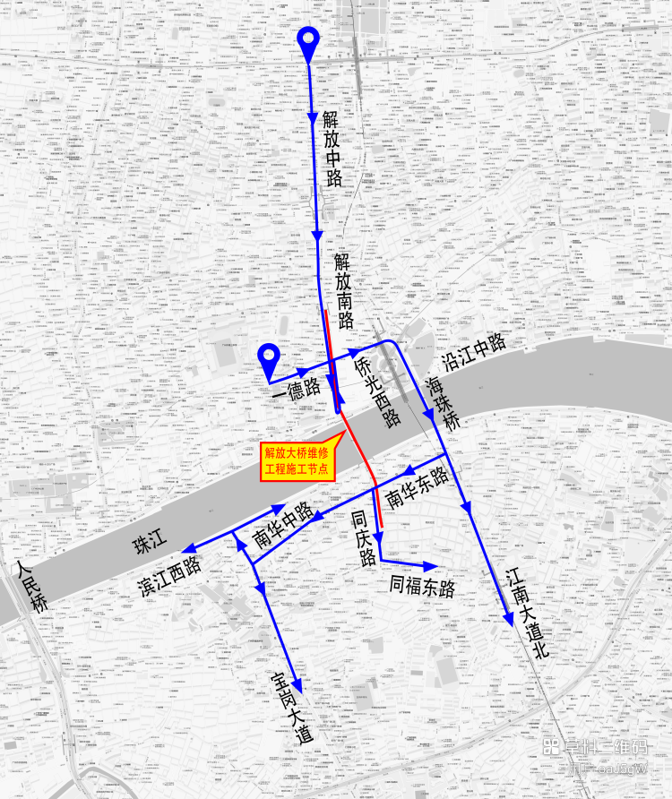 海珠桥、海印桥绕行