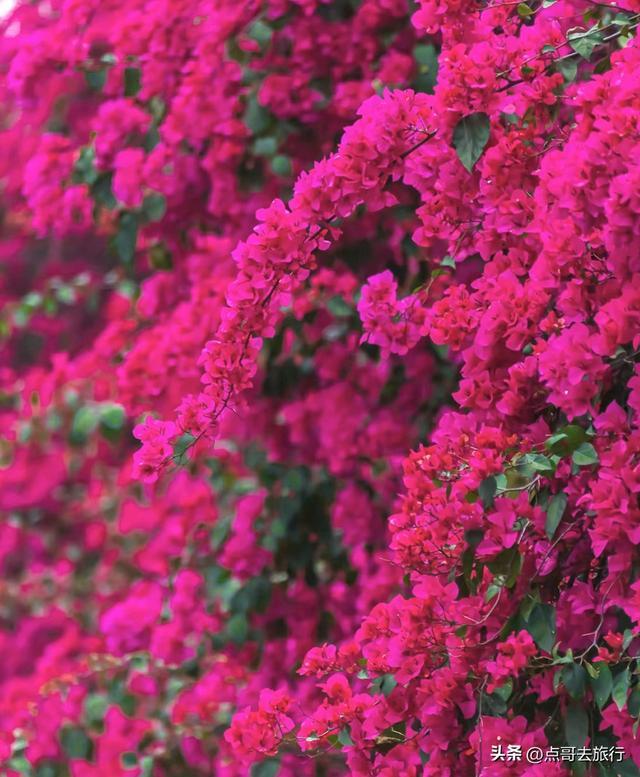 四月底的成都,春天正进行得酣畅淋漓。如果你觉得樱花太短暂、海棠太含蓄,那么此刻席卷全城的三角梅,绝对能给你一种“泼天的浪漫”。今年,成都的三角梅较往年提前半个月就进入了盛花期。其极具视觉冲击力的色彩,让整面墙、一条街“炸”开了。就连央视网、人民日报、中国新闻网等国家媒体,都对一栋名为“三角梅大楼”的住宅楼关注有加。今天,我就介绍两处成都三角梅的顶流观赏地。
